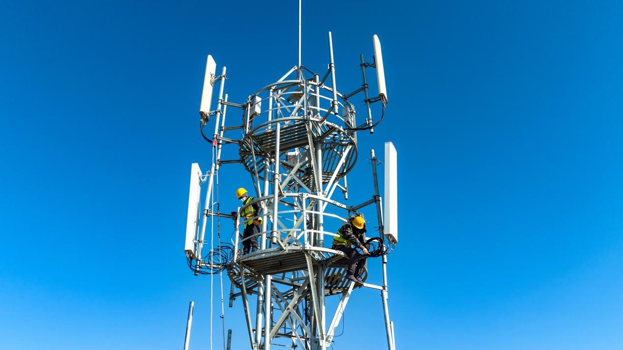 Technicians of the Zhangye branch of China Telecom test a 5G base station in Kangning village, Ganzhou district, Zhangye, northwest China's Gansu province. (People's Daily Online/Yang Yongwei)