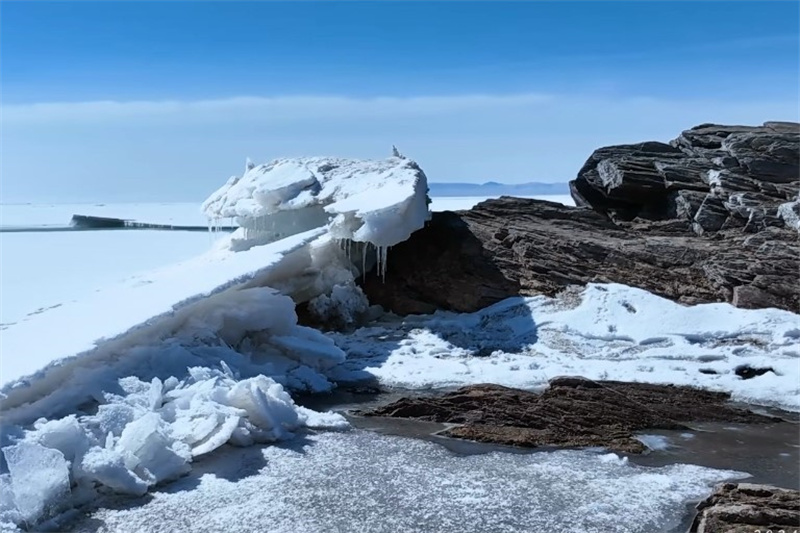 Photo taken on March 25, 2024 shows the northern shore of Qinghai Lake in Gangcha county, Haibei Tibetan Autonomous Prefecture, northwest China's Qinghai Province. (Photo/Chen Mingzhang)