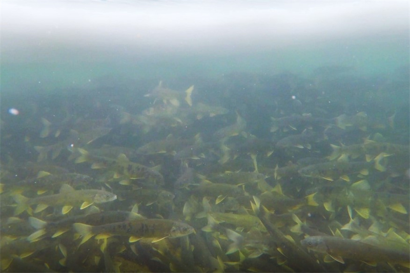 Naked carps swim beneath the surface of Qinghai Lake in Gangcha county, Haibei Tibetan Autonomous Prefecture, northwest China's Qinghai Province. (Photo/Eri Zang'e)