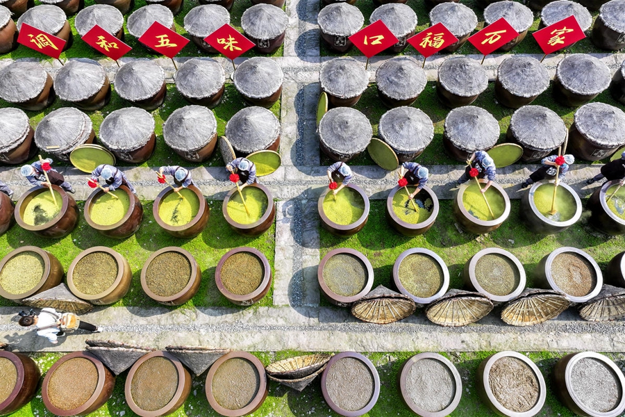 In pics: Workers make soy sauce in Hejiang, SW China's Sichuan