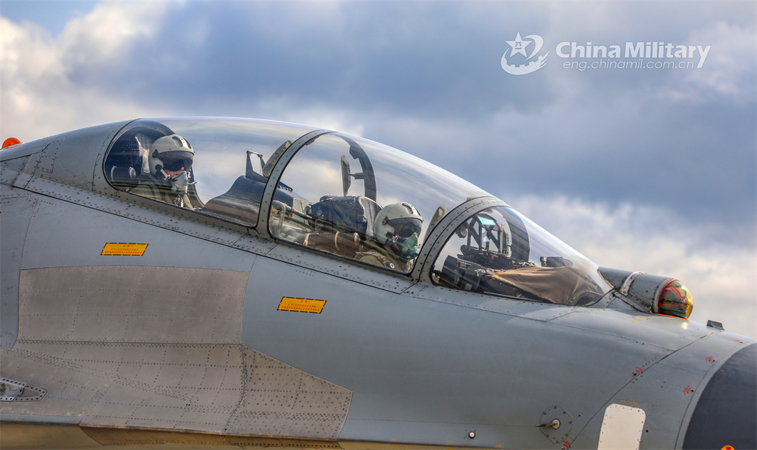 Pilots assigned to an aviation brigade with the air force under the PLA Eastern Theater Command get well-prepared in the cockpit of their fighter jet before takeoff during a flight training exercise on March 17, 2024. (eng.chinamil.com.cn/Photo by Fu Gan)
