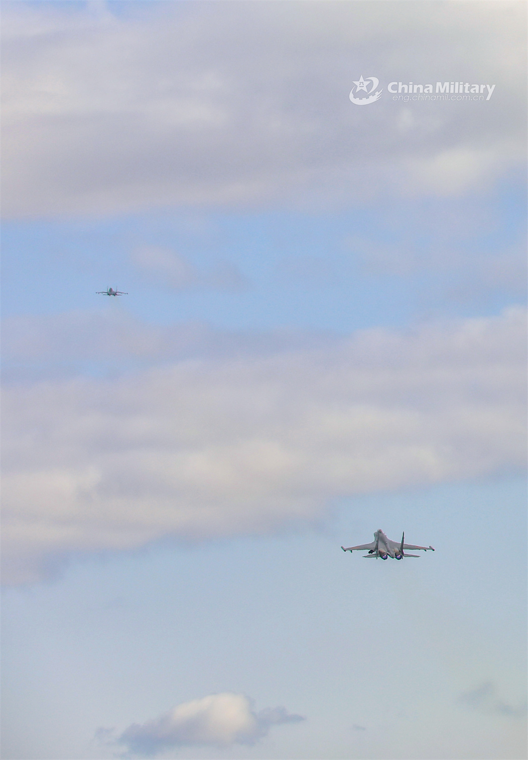Fighter jets attached to an aviation brigade with the air force under the PLA Eastern Theater Command take off for a flight training exercise on March 17, 2024. (eng.chinamil.com.cn/Photo by Fu Gan)