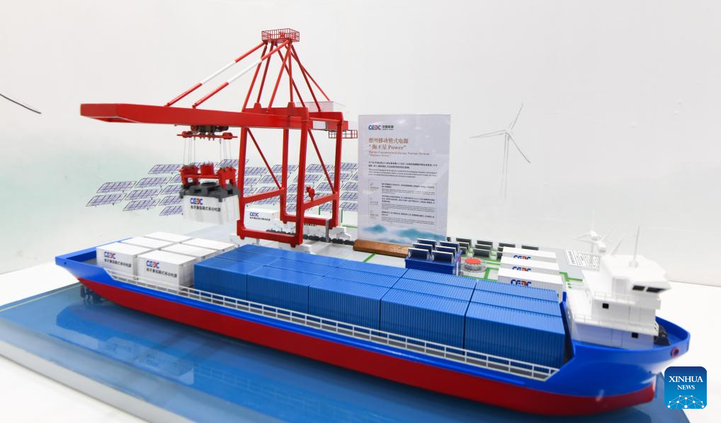A model of marine containerized energy storage system "Neptune Power" is displayed at an exhibition area during the Boao Forum for Asia (BFA) Annual Conference 2024 in Boao, south China's Hainan Province, March 27, 2024. The BFA Annual Conference 2024 was held from March 26 to 29 in Boao, with a series of consensus reached.