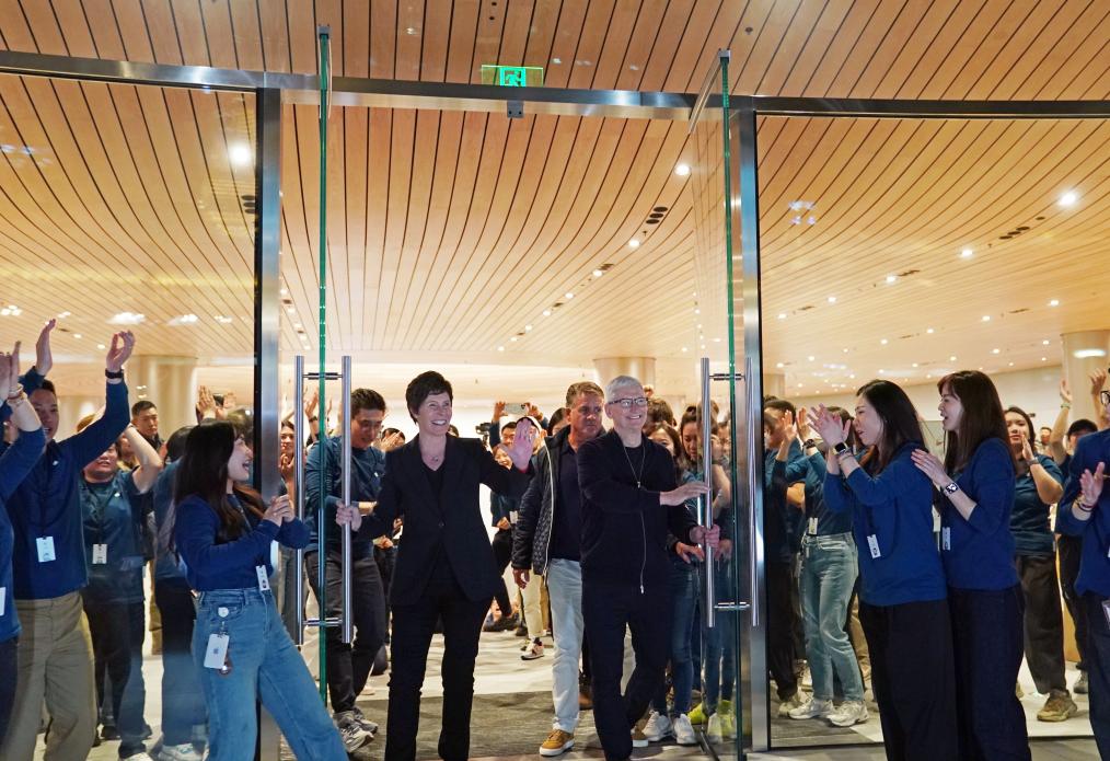 Apple CEO Tim Cook attends the opening of a new flagship Apple store in east China's Shanghai, March 21, 2024. (Xinhua/Liu Ying)
