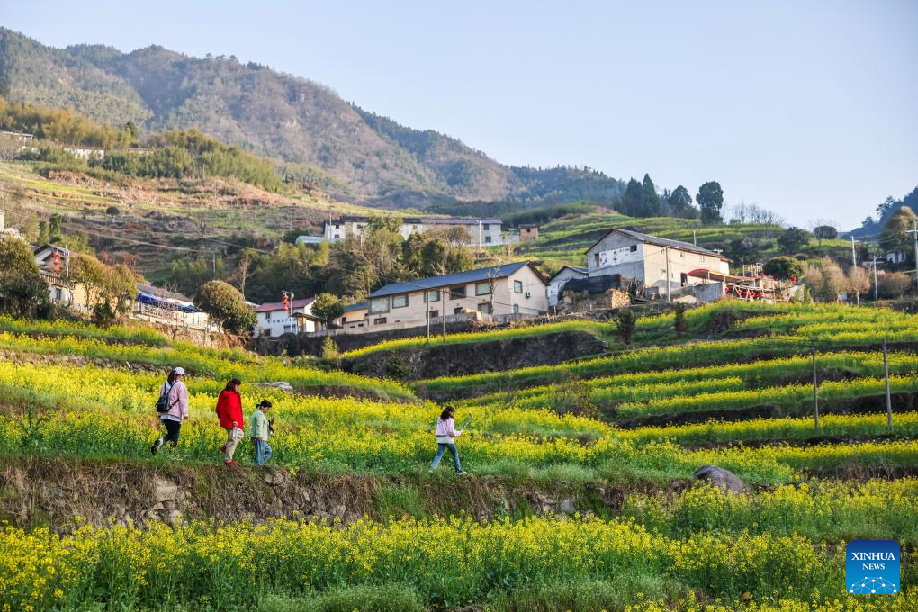 Tourists have fun at Chengshangou scenic area in Heping Town of Changxing County in Huzhou, east China's Zhejiang Province, March 26, 2024. (Xinhua/Xu Yu)