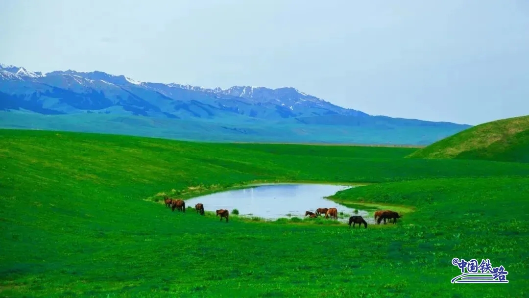 Photo shows the breathtaking scenery of the Kalajun grassland in Tekes county, northwest China's Xinjiang Uygur Autonomous Region. (Photo/China Railway)