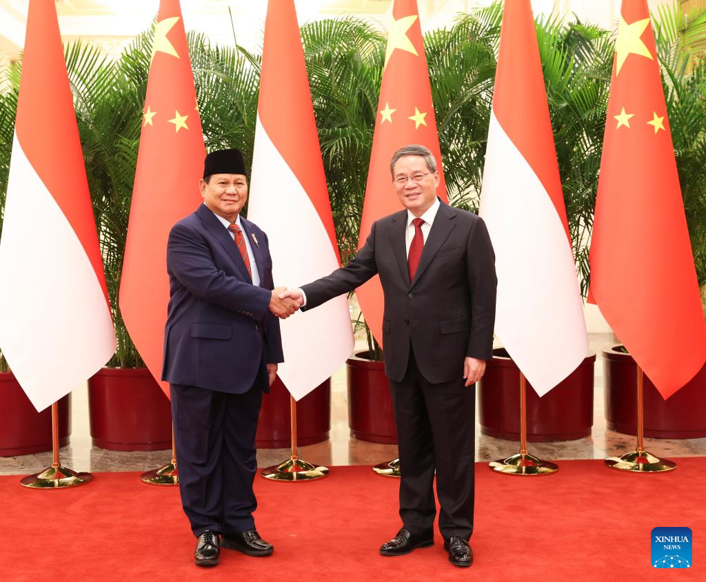 BEIJING, April 2 (Xinhua) -- Chinese Premier Li Qiang met with the President-elect of the Republic of Indonesia and Great Indonesia Movement Party General Chairman Prabowo Subianto in Beijing on Tuesday.