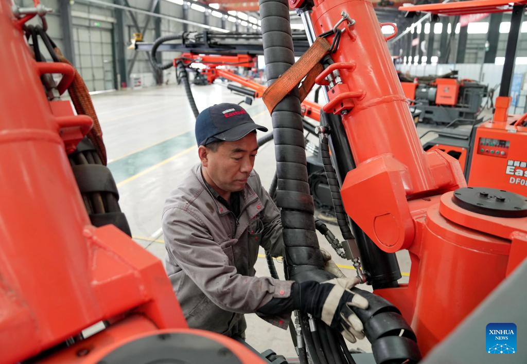 A man works at a workshop of a mechanical equipment enterprise in Changli County, north China's Hebei Province, April 2, 2024. To advance high-quality economic development, local authorities of Changli has guided enterprises to focus on core technologies and improve innovation ability. (Xinhua/Yang Shiyao)