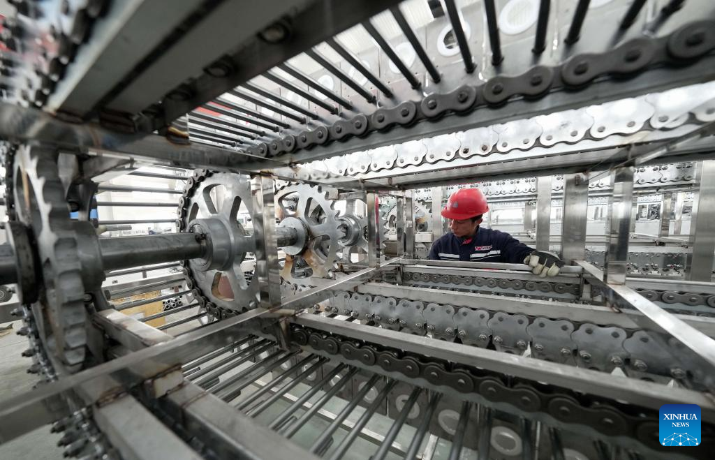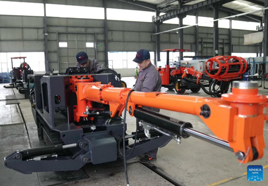 People work at a workshop of a mechanical equipment enterprise in Changli County, north China's Hebei Province, April 2, 2024. To advance high-quality economic development, local authorities of Changli has guided enterprises to focus on core technologies and improve innovation ability. (Xinhua/Yang Shiyao)