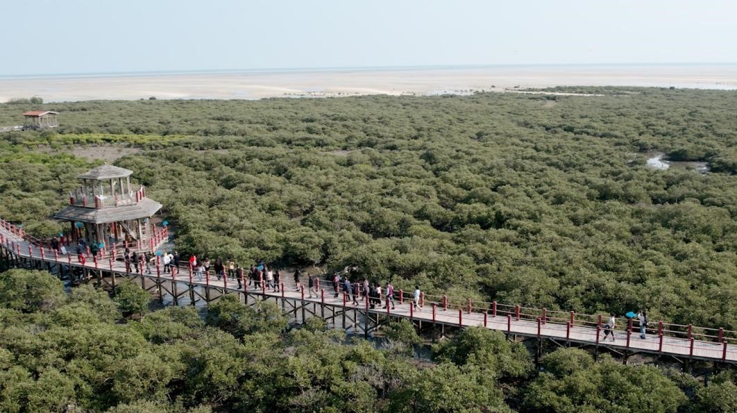 In Beihai city, located at Guangxi's southernmost point, the journalists were astonished by the city's extensive mangrove forest, covering more than 3,000 mu (about 200 hectares). This unique mangrove ecosystem, found only in the intertidal zones of tropical and subtropical coasts, is commonly hailed as the city's "coast guard."