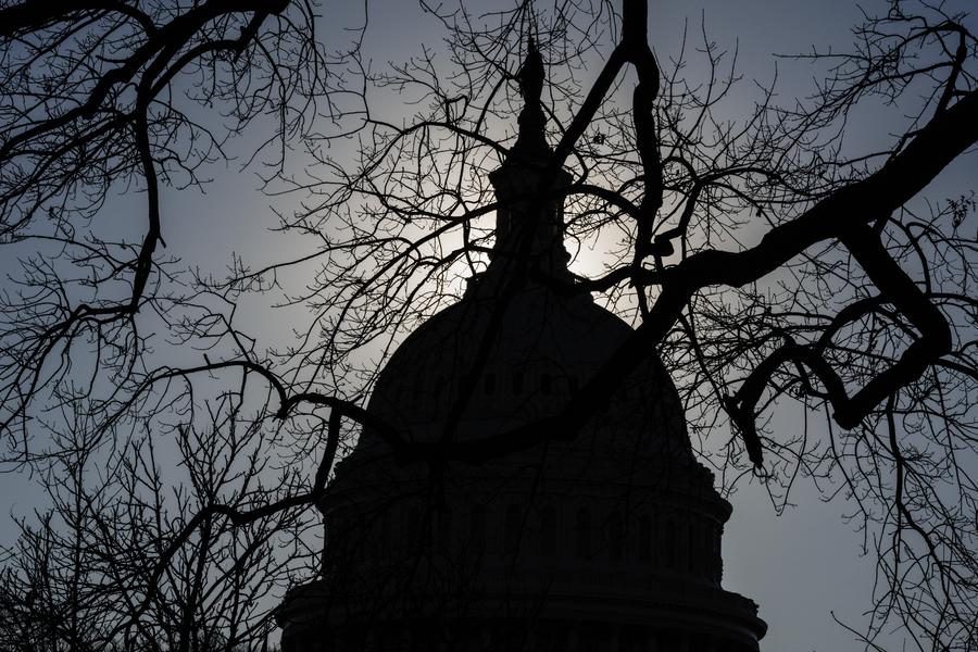 The silhouette of the U.S. Capitol building is seen in Washington, D.C., the United States, Feb. 6, 2024. (Photo by Aaron Schwartz/Xinhua)