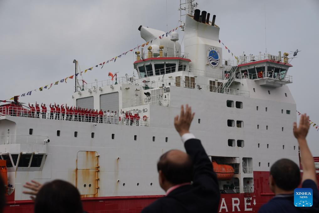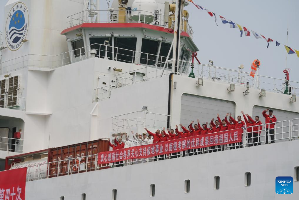 Zhang Beichen, chief scientist of China's 40th Antarctic expedition and the team leader, said that Xuelong, Xuelong 2 and cargo ship Tianhui set off from Shanghai on Nov. 1, 2023 and successfully completed various expedition tasks that lasted 161 days with a total of more than 81,000 nautical miles.