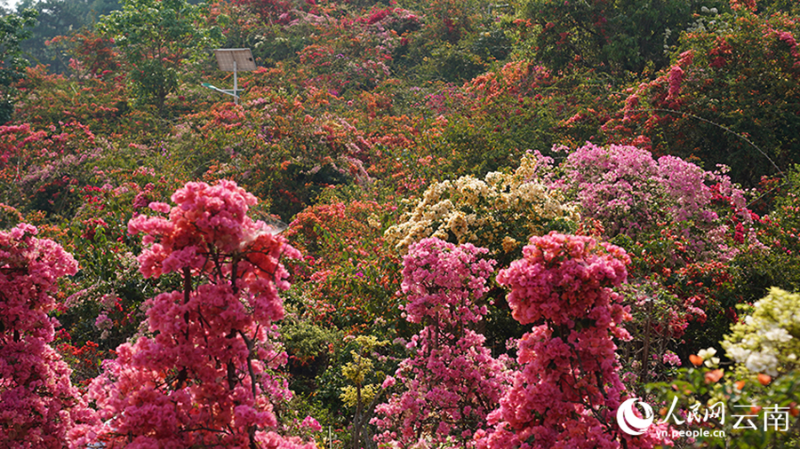 Photos shows the blossoms of bougainvillea in a park in Simao district of Pu'er city, southwest China's Yunnan Province. (Photo/Xu Xiaofang)