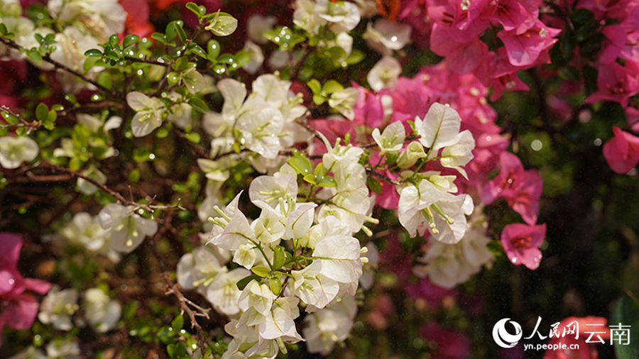 Photos shows the blossoms of bougainvillea in a park in Simao district of Pu'er city, southwest China's Yunnan Province. (Photo/Xu Xiaofang)