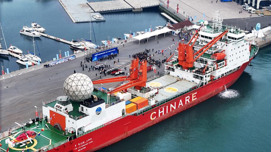 China's icebreaker Xuelong arrives in Qingdao after Antarctic expedition