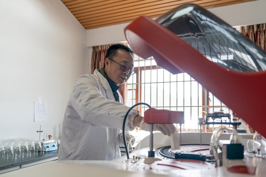 Xu Kun carries out experiments at the Lijiang Alpine Botanic Garden in Lijiang, southwest China's Yunnan Province, March 27, 2024. (Xinhua/Chen Xinbo)