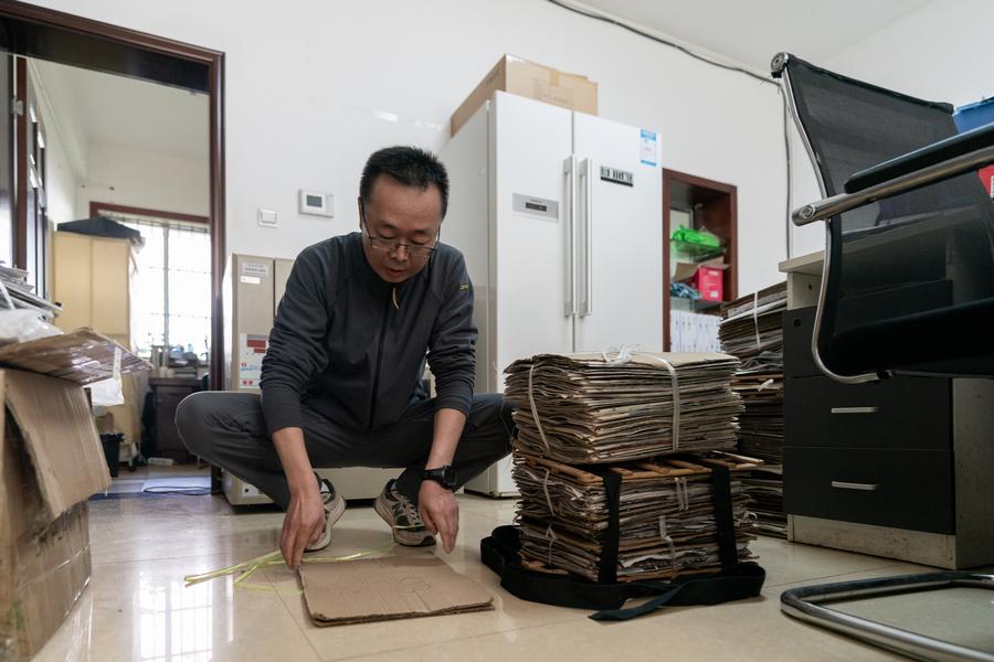 Xu Kun sorts out plant specimens in his office in Yulong County, Lijiang City, southwest China's Yunnan Province, March 25, 2024. (Xinhua/Chen Xinbo)