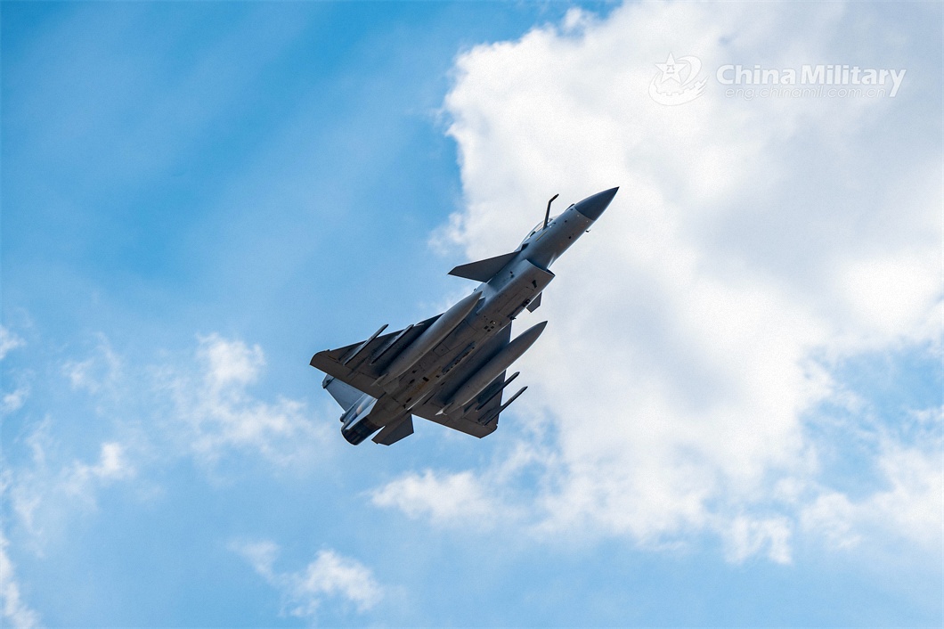 A J-10 fighter jet attached to an aviation brigade with the air force under PLA Southern Theater Command soars up to the sky during a round-the-clock flight training exercise on March 26, 2023. (eng.chinamil.com.cn/Photo by Shang Jieyan)