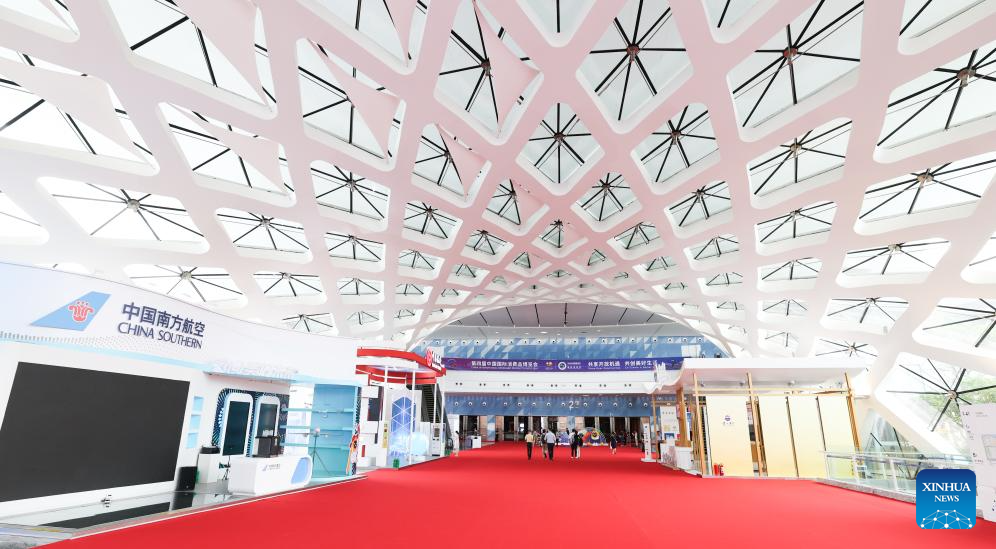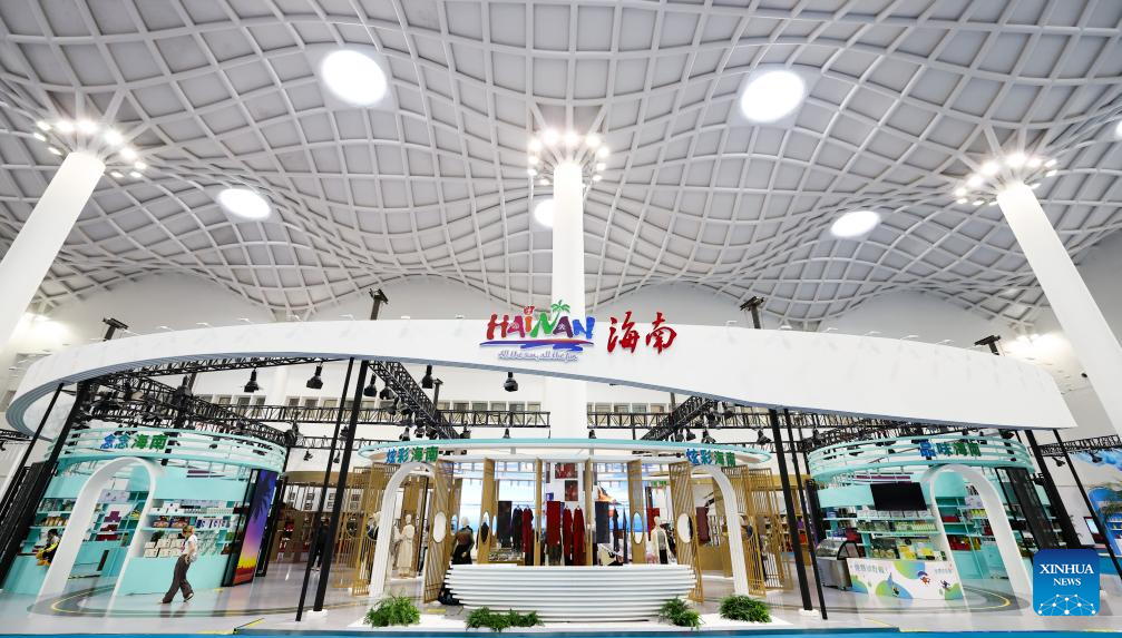 An exhibition area of Hainan Province is pictured at the Hainan International Convention and Exhibition Center, the main venue for the upcoming fourth China International Consumer Products Expo, in Haikou, south China's Hainan Province, April 12, 2024. The fourth China International Consumer Products Expo will open on Saturday in Haikou, the capital city of south China's Hainan Province.