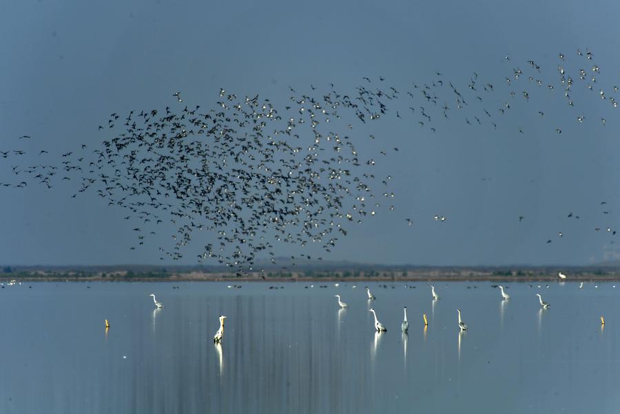 This photo taken on Dec. 14, 2022 shows migratory birds at Hengling Lake Provincial Nature Reserve, a part of Dongting Lake wetland, central China's Hunan Province. (Xinhua/Zhao Zhongzhi)