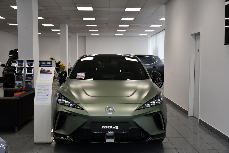 This photo taken on Feb. 1, 2024 shows a Chinese electric car MG4 on display at an MG sales center in Ljubljana, Slovenia. (Xinhua/Zhou Yue)