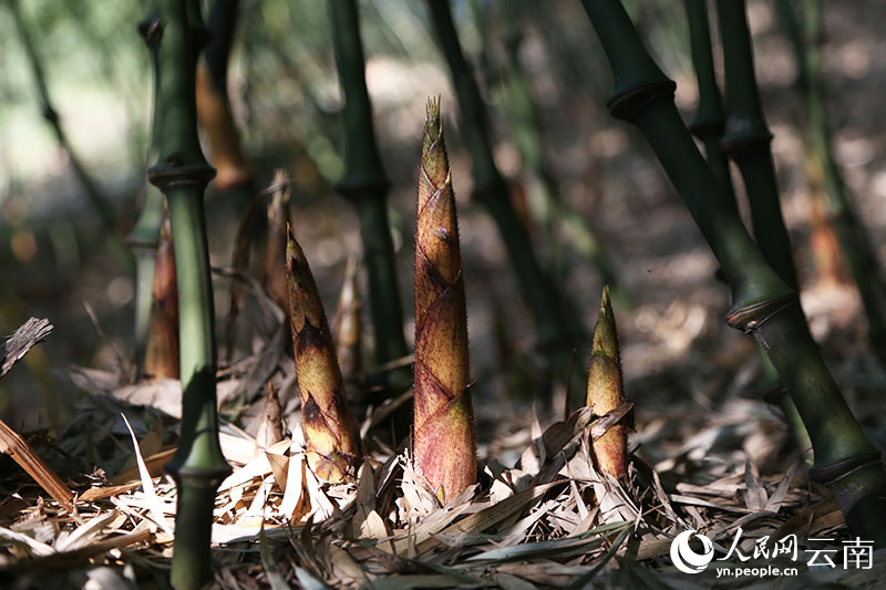 Photo shows bamboo shoots of Qiongzhu, a bamboo variety, in Daguan county, Zhaotong city, southwest China's Yunnan Province. (Photo/Tang Yingping)