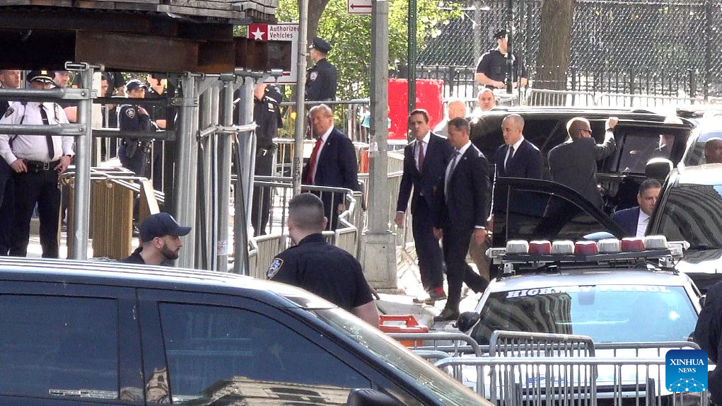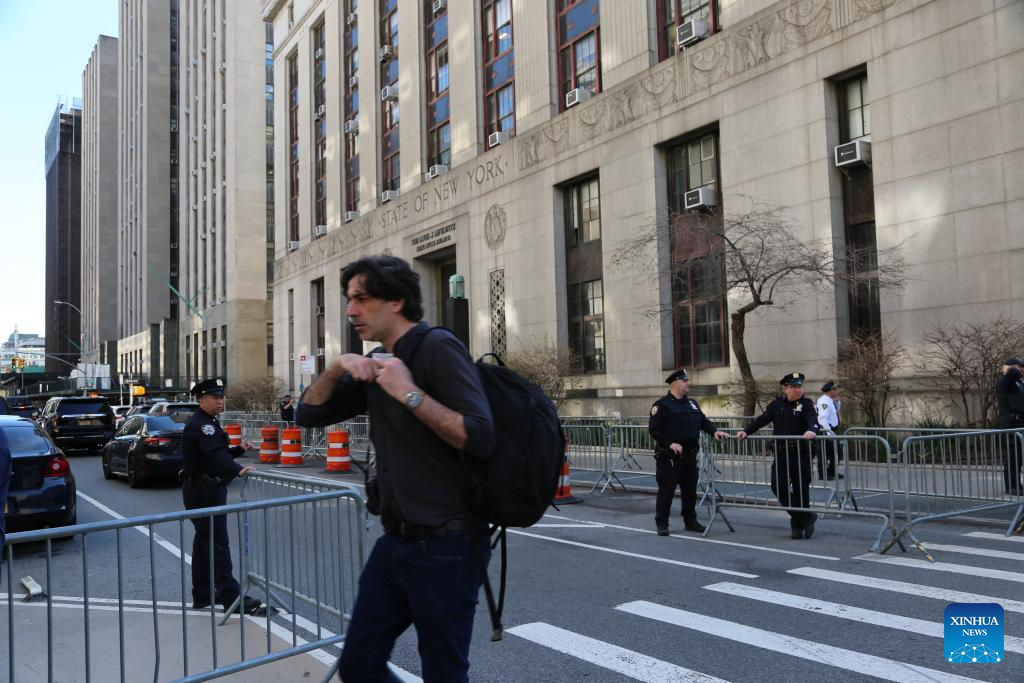 NEW YORK, April 15 (Xinhua) -- Former U.S. President Donald Trump on Monday appeared in a criminal court in Manhattan, New York City, in the hush money case, making him the first former U.S. president to stand a criminal trial.