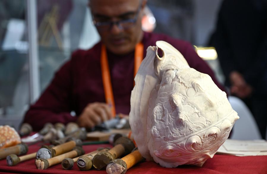 This photo taken on April 13, 2024 shows an art work of Italian jewelry brand Russo Cammei at the fourth China International Consumer Products Expo (CICPE) in Haikou, capital city of south China's Hainan Province. (Xinhua/Guo Cheng)
