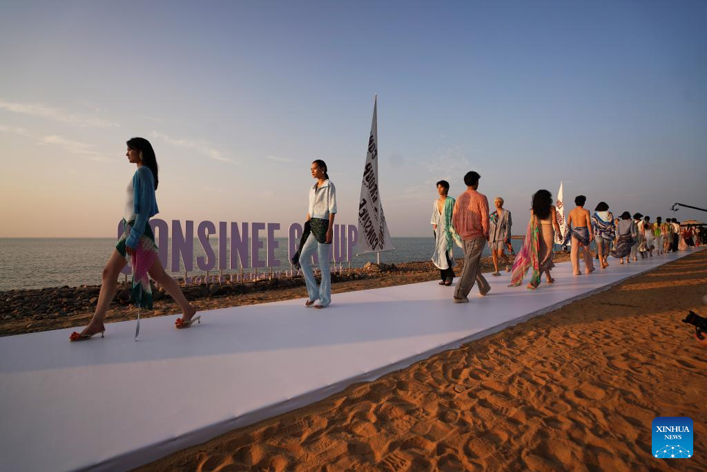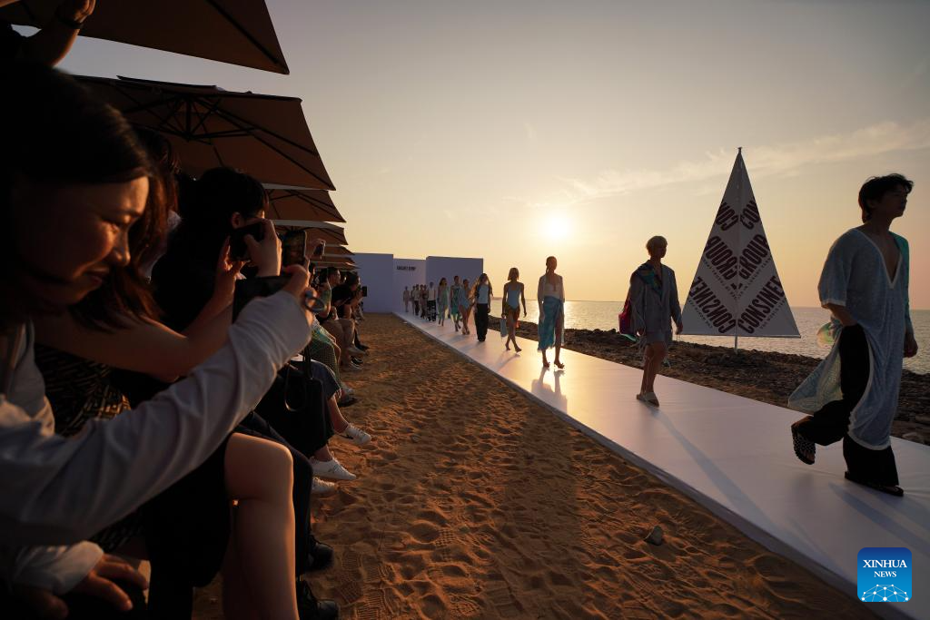 Models present creations during a fashion show at the fourth China International Consumer Products Expo (CICPE) in Haikou, capital city of south China's Hainan Province, April 15, 2024. The Expo, which started Saturday and lasts till April 18, is China's only national-level exhibition featuring consumer products and also the largest consumer expo in the Asia-Pacific region. (Xinhua/Li Mengjiao)