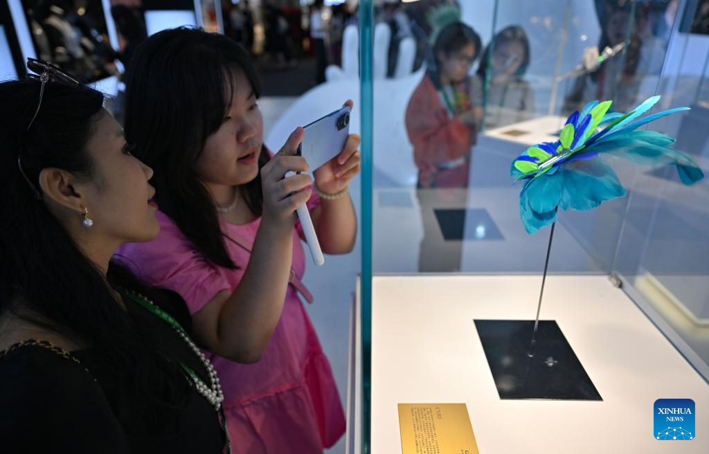 Visitors view a piece of jewelry at the fourth China International Consumer Products Expo (CICPE) in Haikou, capital city of south China's Hainan Province, April 13, 2024. The Expo, which started Saturday and lasts till April 18, is China's only national-level exhibition featuring consumer products and also the largest consumer expo in the Asia-Pacific region. (Xinhua/Guo Cheng)