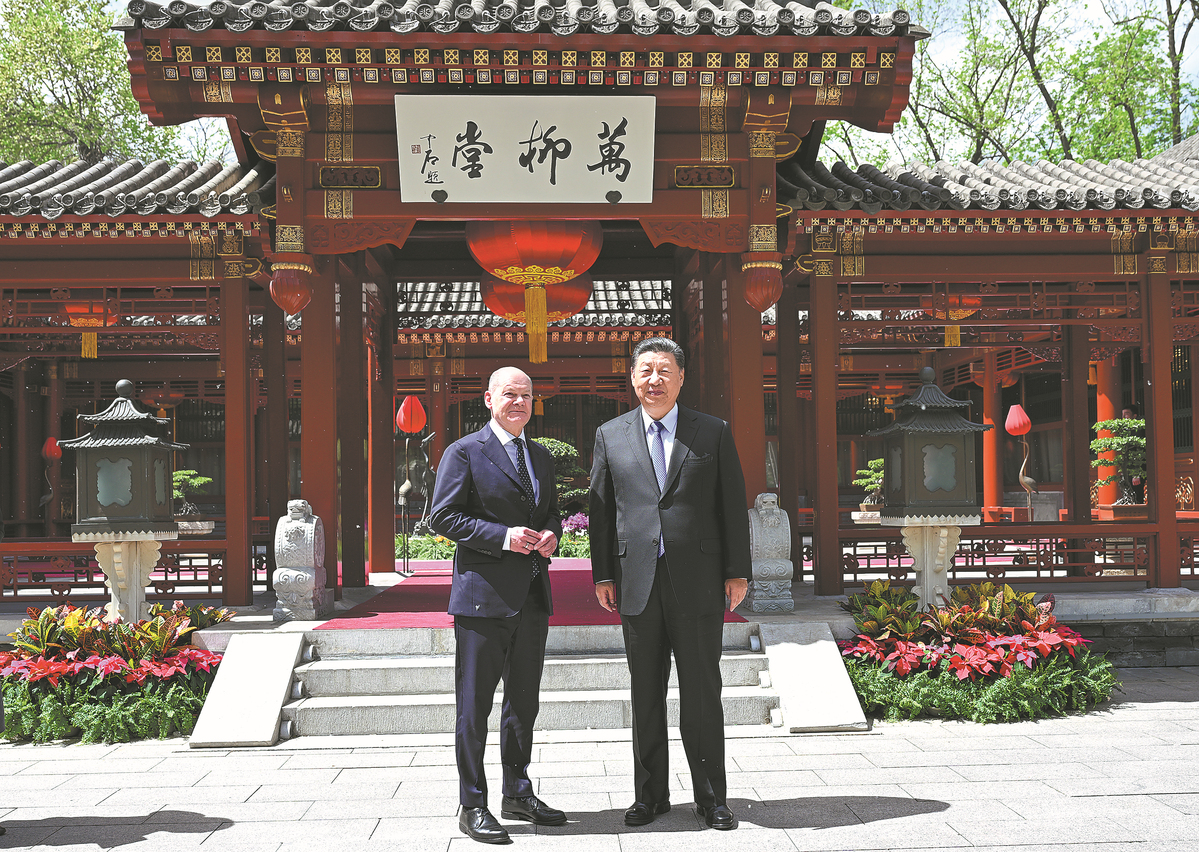 President Xi Jinping meets with German Chancellor Olaf Scholz on Tuesday at the Diaoyutai State Guesthouse in Beijing. XIE HUANCHI/XINHUA