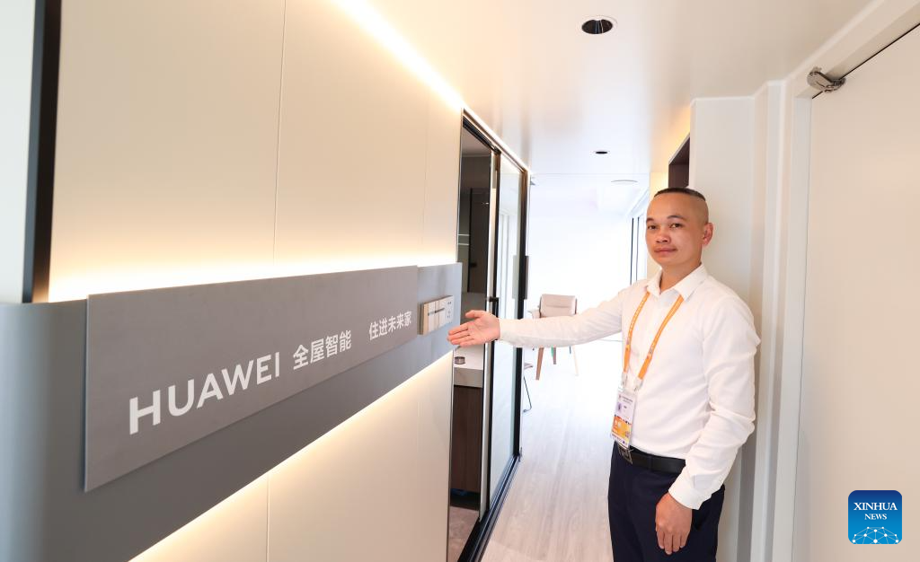 A staff member shows a room with AI-assisted sensors at the fourth China International Consumer Products Expo (CICPE) in Haikou, capital city of south China's Hainan Province, April 16, 2024. At the ongoing expo in Hainan, AI technology products have attracted numerous visitors interested in smart innovations. (Xinhua/Yang Guanyu)
