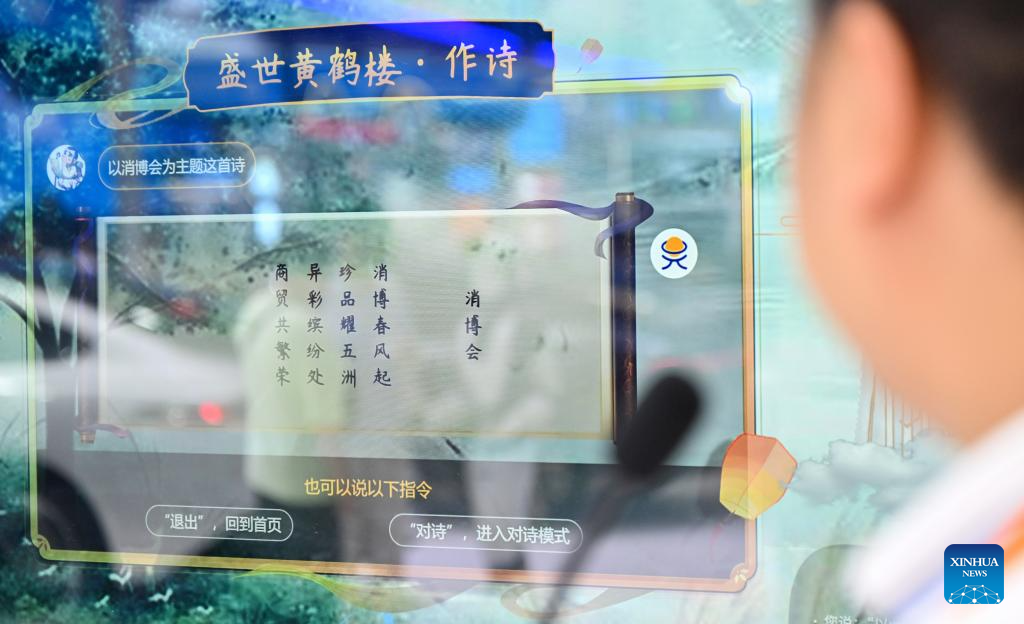 A poem is written based on artificial intelligence (AI) algorithm at the fourth China International Consumer Products Expo (CICPE) in Haikou, capital city of south China's Hainan Province, April 15, 2024. At the ongoing expo in Hainan, AI technology products have attracted numerous visitors interested in smart innovations. (Xinhua/Guo Cheng)