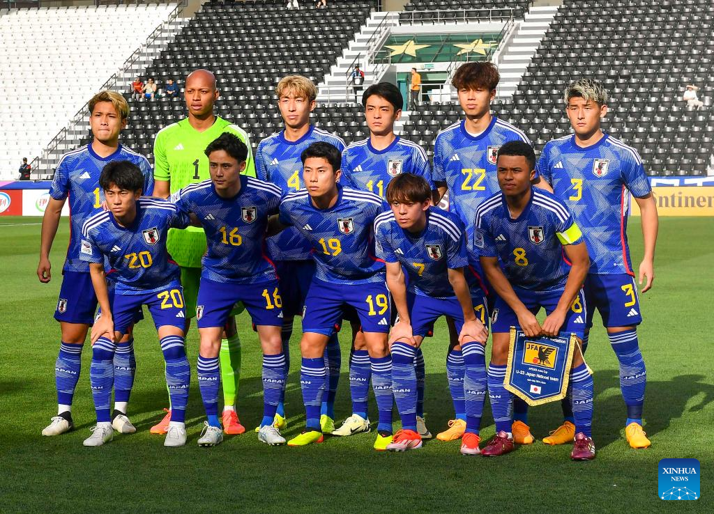 Starting players of Japan line up prior to the Group B football match between China and Japan of AFC U23 Asian Cup Qatar 2024 at Jassim Bin Hamad Stadium in Doha, Qatar, April 16, 2024. (Photo by Nikku/Xinhua)