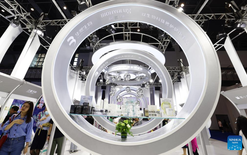 The booth of Bloomage Biotechnology Corp., Ltd. is seen during the fourth China International Consumer Products Expo in Haikou, capital city of south China's Hainan Province, April 17, 2024. The fourth China International Consumer Products Expo, which lasts from April 13 to 18, is China's only national-level exhibition featuring consumer products and is also the largest consumer expo in the entire Asia-Pacific region. (Xinhua/Yang Guanyu)