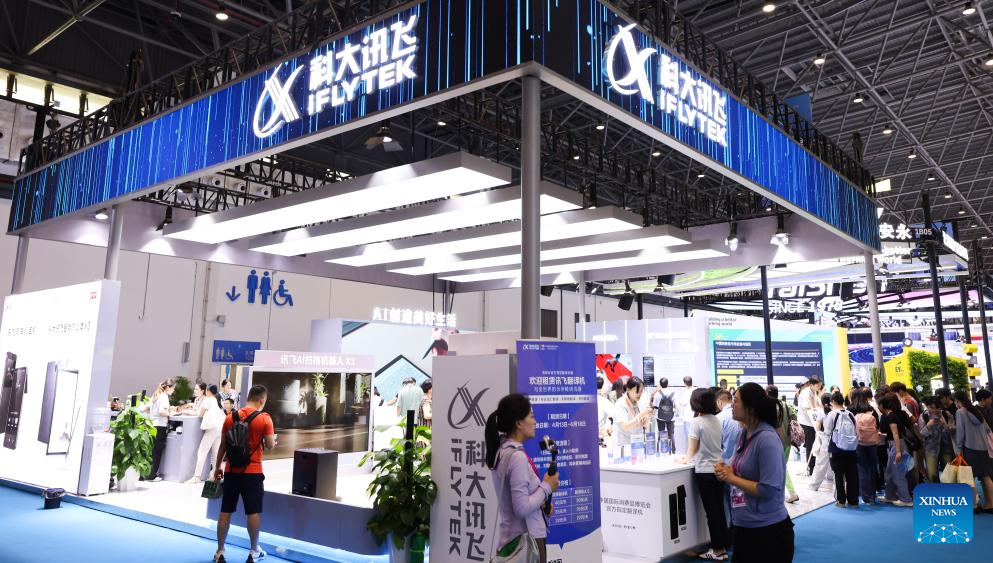 The booth of iFlytek is seen during the fourth China International Consumer Products Expo in Haikou, capital city of south China's Hainan Province, April 17, 2024. The fourth China International Consumer Products Expo, which lasts from April 13 to 18, is China's only national-level exhibition featuring consumer products and is also the largest consumer expo in the entire Asia-Pacific region. (Xinhua/Yang Guanyu)