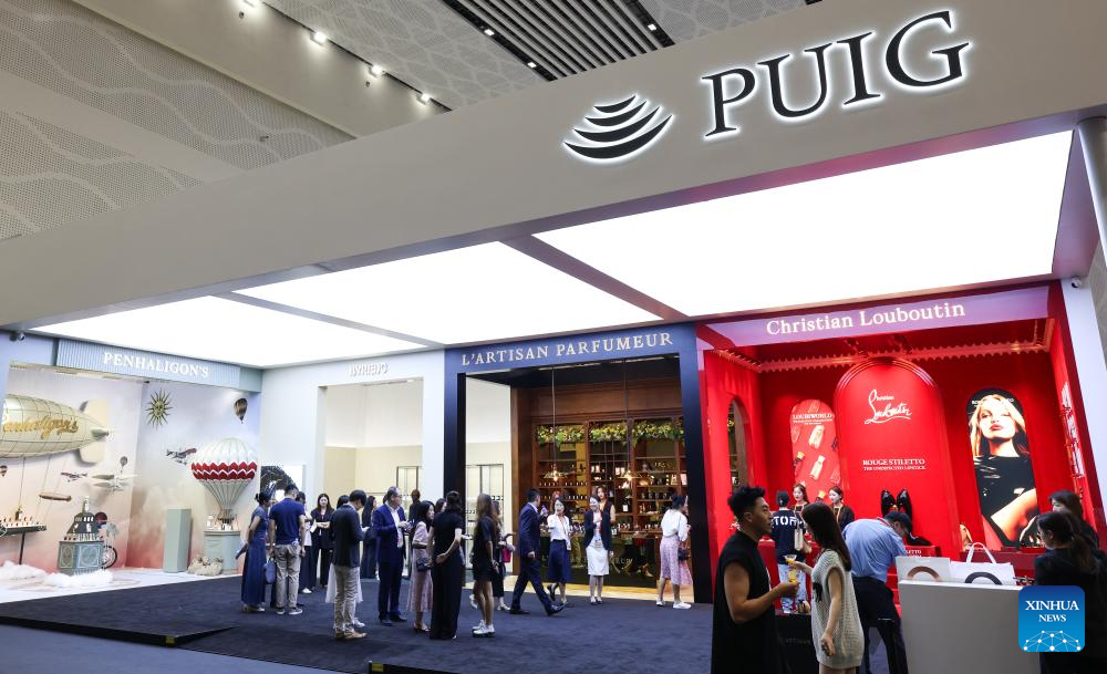 People visit the booth of Puig during the fourth China International Consumer Products Expo in Haikou, capital city of south China's Hainan Province, April 17, 2024. The fourth China International Consumer Products Expo, which lasts from April 13 to 18, is China's only national-level exhibition featuring consumer products and is also the largest consumer expo in the entire Asia-Pacific region. (Xinhua/Yang Guanyu)
