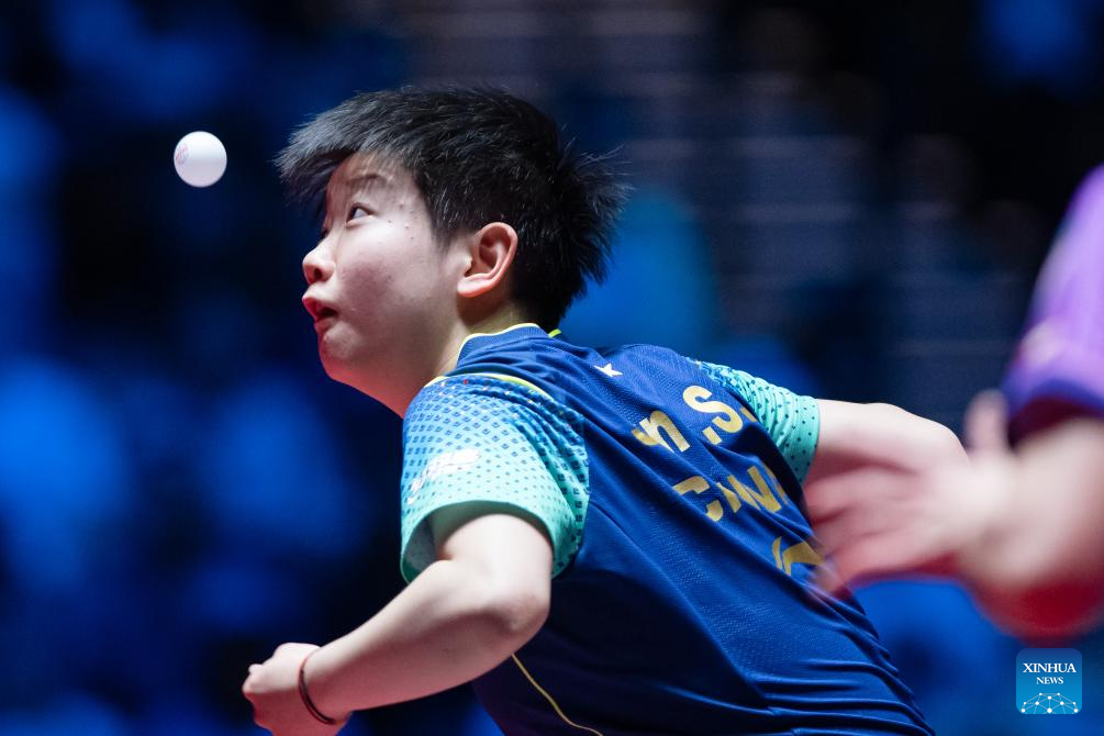 Sun Yingsha of China competes during the women's singles match against Chen Szu-Yu of Chinese Taipei at the ITTF World Cup Macao 2024 at Galaxy Arena in Macao, China, April 17, 2024. (Xinhua/Cheong Kam Ka)