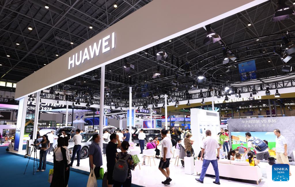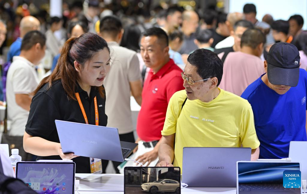 Visitors look at electronic products at the fourth China International Consumer Products Expo in Haikou, capital city of south China's Hainan Province, April 17, 2024. The expo opened to the public on Wednesday. (Xinhua/Guo Cheng)
