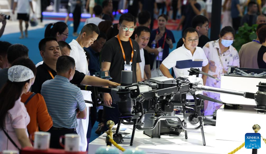 Visitors look at drones of DJI at the fourth China International Consumer Products Expo in Haikou, capital city of south China's Hainan Province, April 17, 2024. The expo opened to the public on Wednesday. (Xinhua/Yang Guanyu)