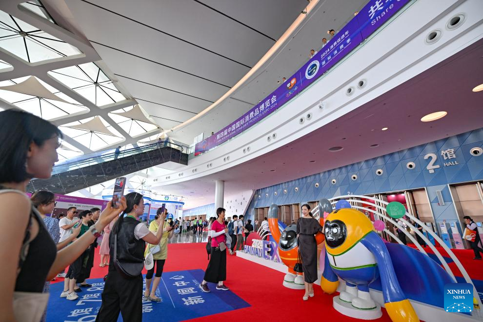 Visitors attend the fourth China International Consumer Products Expo in Haikou, capital city of south China's Hainan Province, April 17, 2024. The expo opened to the public on Wednesday. (Xinhua/Yang Guanyu)