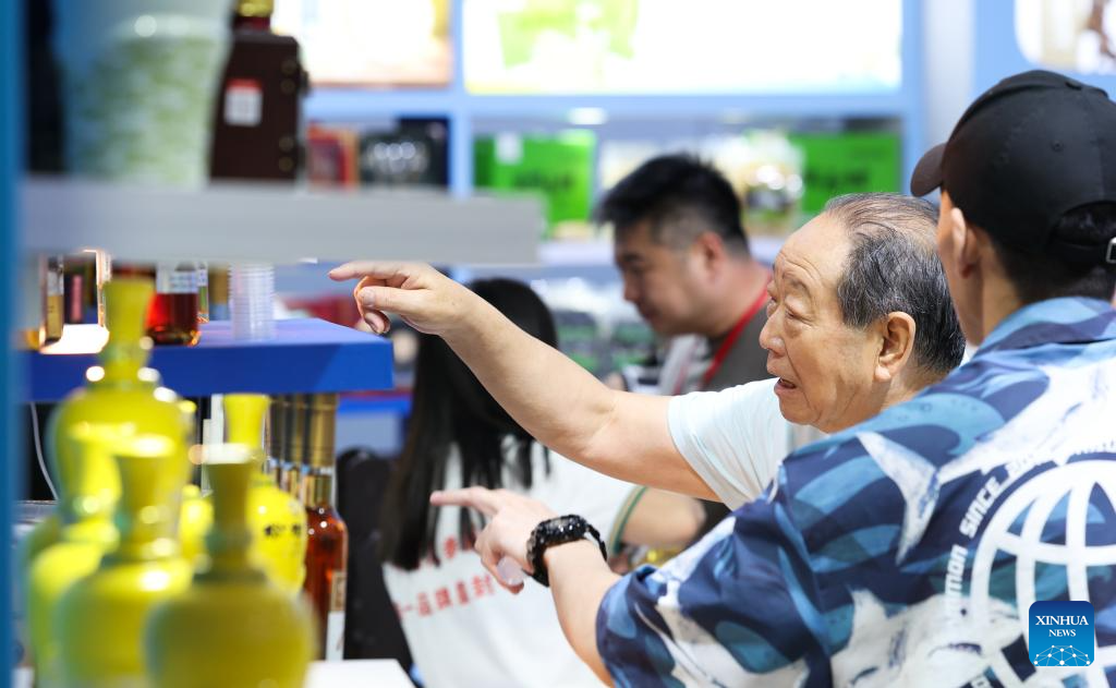 Visitors look at wine products at the fourth China International Consumer Products Expo in Haikou, capital city of south China's Hainan Province, April 17, 2024. The expo opened to the public on Wednesday. (Xinhua/Yang Guanyu)