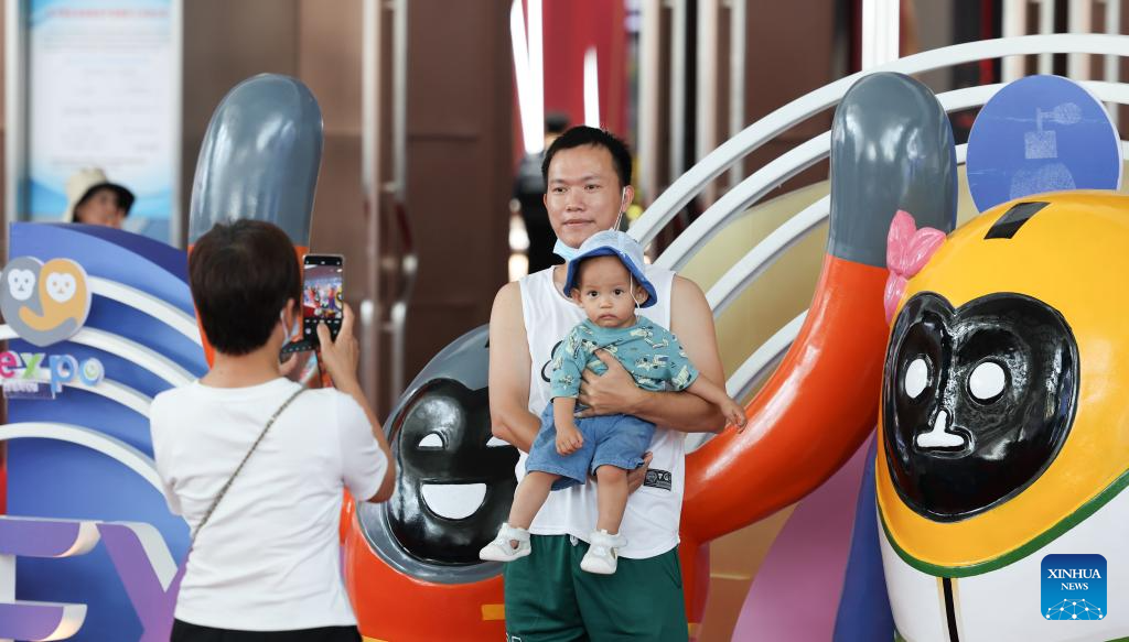 Visitors pose for photos at the venue of the fourth China International Consumer Products Expo in Haikou, capital city of south China's Hainan Province, April 17, 2024. The expo opened to the public on Wednesday. (Xinhua/Yang Guanyu)