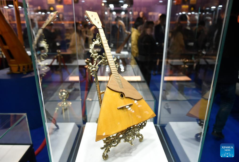 Tourists visit a museum featuring Chinese and western music cultures in Dalian, northeast China's Liaoning Province, April 16, 2024. (Xinhua/Lu Peng)