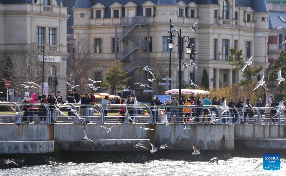 Tourists go sightseeing at a port in Dalian, northeast China's Liaoning Province, April 16, 2024. (Xinhua/Li Gang)