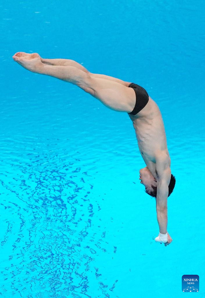 Yang Hao of China competes during the mixed 3m &10m team final at the World Acquatics Diving World Cup 2024 Super Final Stop 1 in Xi'an, northwest China's Shaanxi Province, April 19, 2024. (Xinhua/Li Yibo)