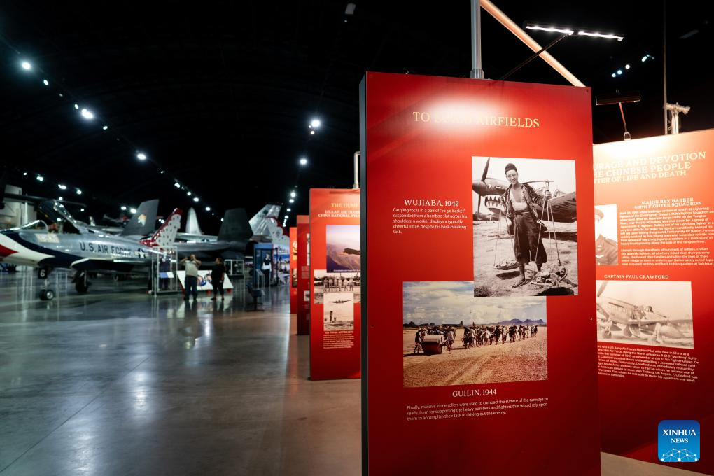 A photo exhibition commemorating the Flying Tigers and Doolittle Raiders, Americans who fought Japan in World War II in cooperation with the Chinese people, is held at the National Museum of the U.S. Air Force in Dayton, Ohio, the United States, April 18, 2024. The half-year-long exhibition recounts the stories of the Flying Tigers and Doolittle Raiders with around 100 photos and detailed narrations. (Xinhua/Liu Jie)