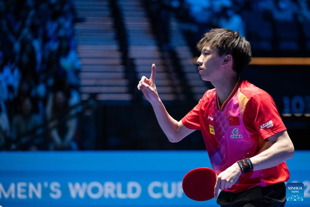 MACAO, April 20 (Xinhua) -- China has secured both titles in advance at the ITTF World Cup as they booked all the four final spots here on Saturday, with Ma Long sweeping Wang Chuqin 4-0 in the men's singles semifinals.