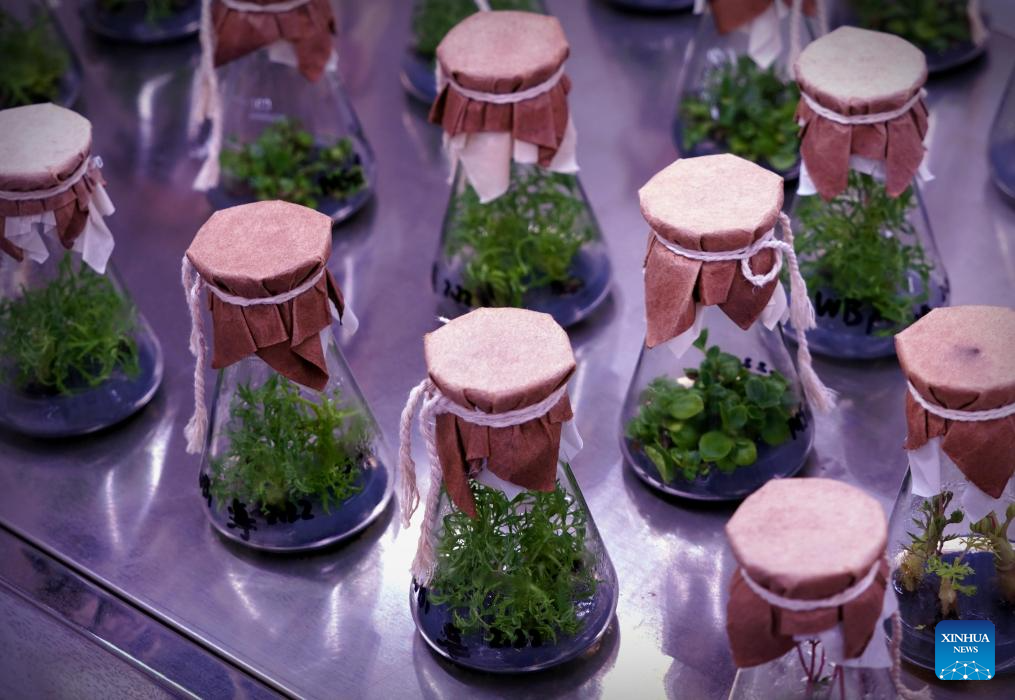 This photo taken on April 16, 2024 shows peony tissue seedlings developed at a laboratory in Luoyang, central China's Henan Province. As an imperial capital during 13 dynasties, Luoyang claims to have the country's best peonies. In recent years, Luoyang has actively explored the culture related to peony flowers, encouraging the development of peony-themed porcelain, painting, and many other characteristic activities containing peony elements. This enables tourists to enjoy both the flowers and the vibe of this ancient capital. (Xinhua/Li An)