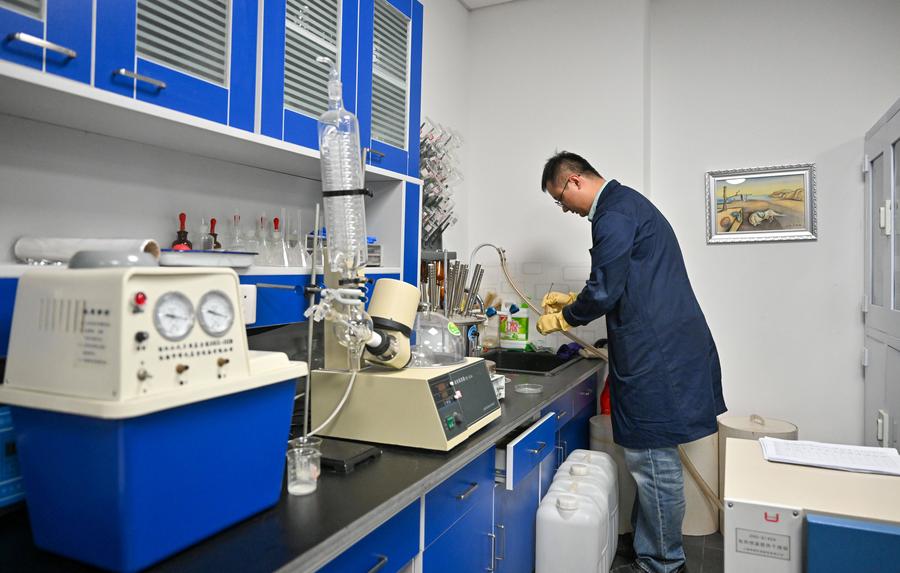 Gao Xuemiao prepares agent for experiment at the laboratory of Tianjin Library in north China's Tianjin Municipality, April 18, 2024. (Xinhua/Sun Fanyue)